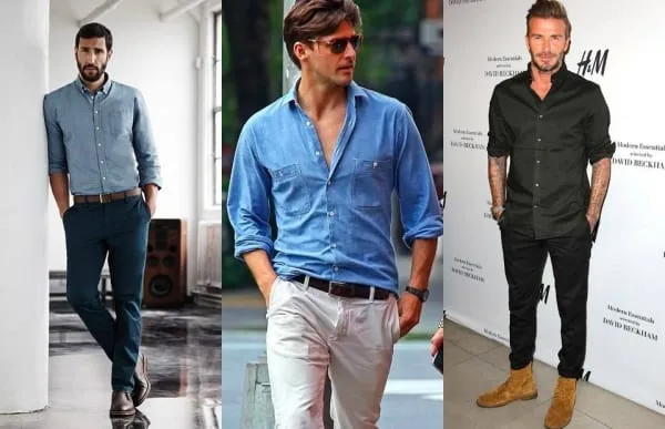 A black shirt always makes a man look more attractive. To complete this all-black outfit other than a black shirt you also need black pants and a pair of black shoes. You can go for plain black shorts or a printed one depending on the occasion you are selecting your outfit. Shoes are a significant point of your overall outfit. Formal black shoes will complete the look of yours. Always tuck your shirt in if you are going for this outfit. Roll your sleeves if you want, or you can keep the full sleeves intact. Just put it on according to your preference and comfort level.